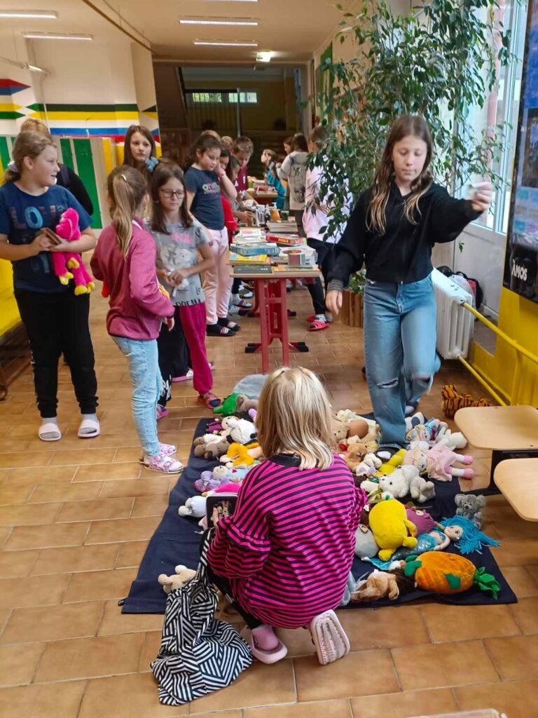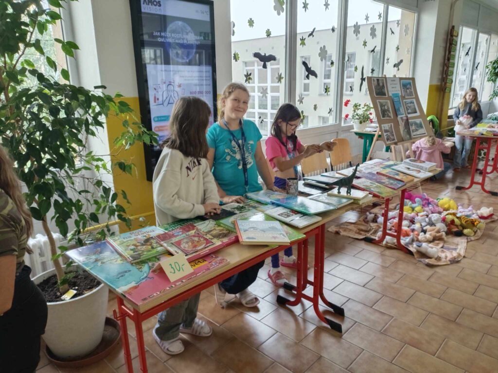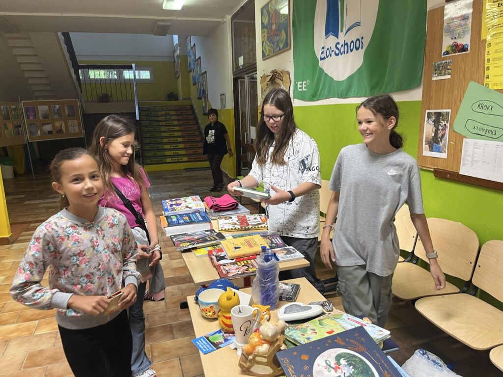 „Ve chvíli mimořádné situace, se okamžitě domluvíme na pomoci. Na podzim při povodních jsme připravili plakátky, které lepíme na dveře tříd a školy, dáváme na fb. Žáci i občané přinesou věci, které se jim už nehodí, ale jsou funkční a my je rozdělíme a na chodbě u šaten je prodáváme za 2,-, 5,-,10,-, 20,-, 30,-, 50,-.
